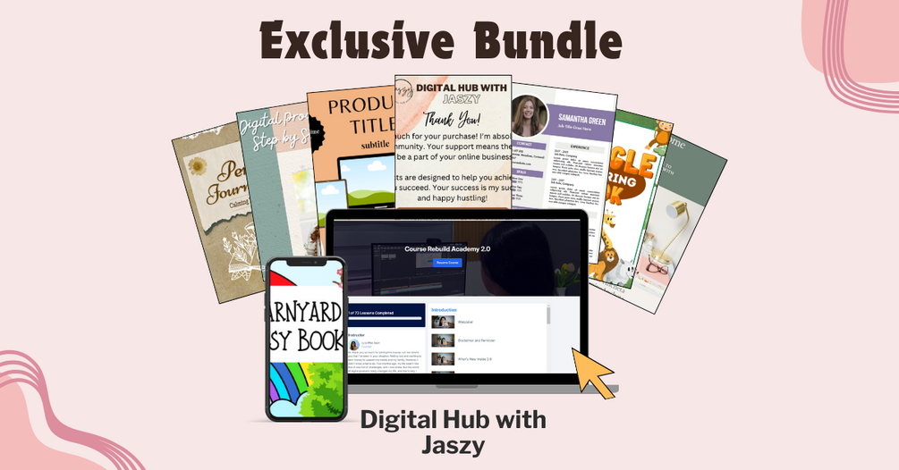 Unlock your complete potential with the "Digital Hub with Jaszy Ebooks and Canva Templates that come with MRR" a dynamic collection of digital products that you can sell right away to kick off your online business.